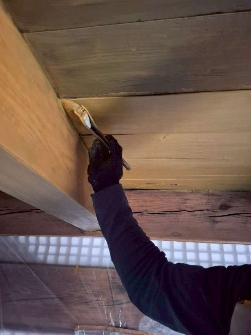 長野県長野市戸建にて、外部玄関周りの木部塗装工事を行いました。